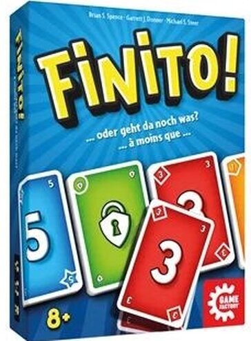 Finito ist ein mitreißendes, schnell gespieltes Kartenspiel. Trotz kurzen Regeln sorgt das Spiel für Spannung und große Emotionen. „Finito!“ ist nicht nur Titel des Spiels, sondern auch der schadenfreudige Ausruf, wenn man den Lauf eines etwas zu mutigen Mitspielers beendet und ihm einen Haufen Strafkarten „schenkt“.