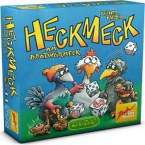 Heckmeck am Bratwurmeck Von Reiner Knizia. „Heckmeck am Bratwurmeck“ ist ein turbulentes Würfelspiel im beliebten Hühnerambiente. In der Spielmitte warten auf dem „Grill“ 16 unterschiedlich wertvolle Portionen „Bratwürmer“ darauf, von den würfelnden Hühnern ergattert zu werden. Dazu pickt ein Spieler identische Würfelsymbole aus seinem Wurf heraus und würfelt mit den verbliebenen Würfeln weiter. Erreicht sein Würfelergebnis den Wert einer ausliegenden „Bratwurmportion“, kann er diese nehmen oder anderen klauen! „Heckmeck am Bratwurmeck“ ist ein Würfelspiel für schlaue Vögel, die den „Bratwurm“ gerochen haben.
