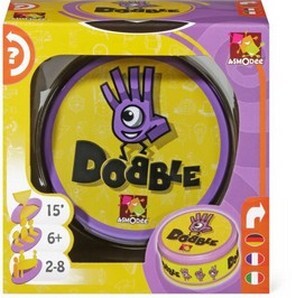 In Dobble gibt es 55 Karten mit jeweils 8 unterschiedlichen Symbolen. Und jede Menge Spielmöglichkeiten. Zum Beispiel: Jeder Spieler hat einen Kartenstapel vor sich und eine Karte liegt in der Mitte. Dann decken alle Spieler gleichzeitig eine Karte auf. Wenn Sie jetz t als Erster ein Symbol entdecken, dass Sie auf Ihrer Karte haben und dass auch auf der Karte in der Mitte abgebildet ist, müssen Si e es nur benennen, und Sie dürfen Ihre Karte in die Mitte legen. Dann beginnt die nächste Runde. Wer als erster seine Karten los ist , hat gewonnen. Glauben Sie bloß nicht, das wäre banal! Ein lustiges Beobachtungs- und Reaktionsspiel für die ganze Familie und lustige Spielerunden.